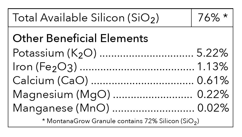 MontanaGrow's plant available silica and distinct combination of trace minerals improves soil texture.